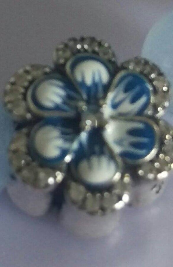8mm lapis lazuli and 4mm silver flower shaped spacer beads and completed with this beautiful blue and white flower charm with tiny cubic zirconia stones around the outside of petals.