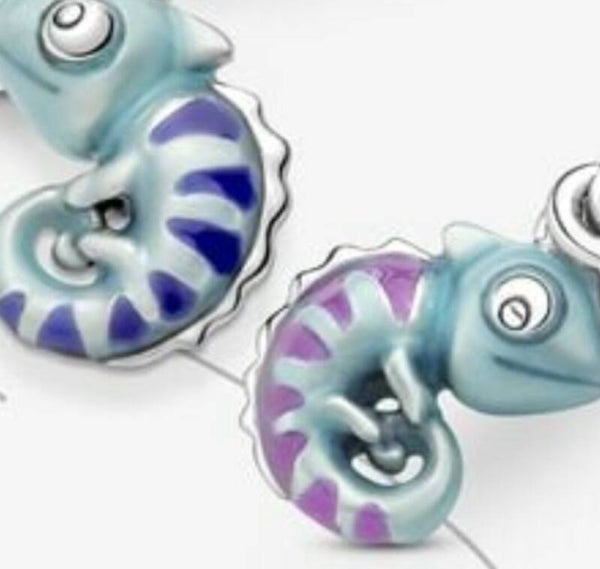 8mm hematite beads, 4mm hematite spacer beads and this delightful little chap. He's a sterling silver chameleon charm with thermochronic enamel which changes colour in response to temperature change. His stripes change from blue/purple when cold to pink when hot.