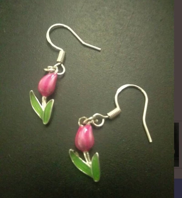 Earrings available separtly Pink tulip charms on sterling silver shepherd hook earrings