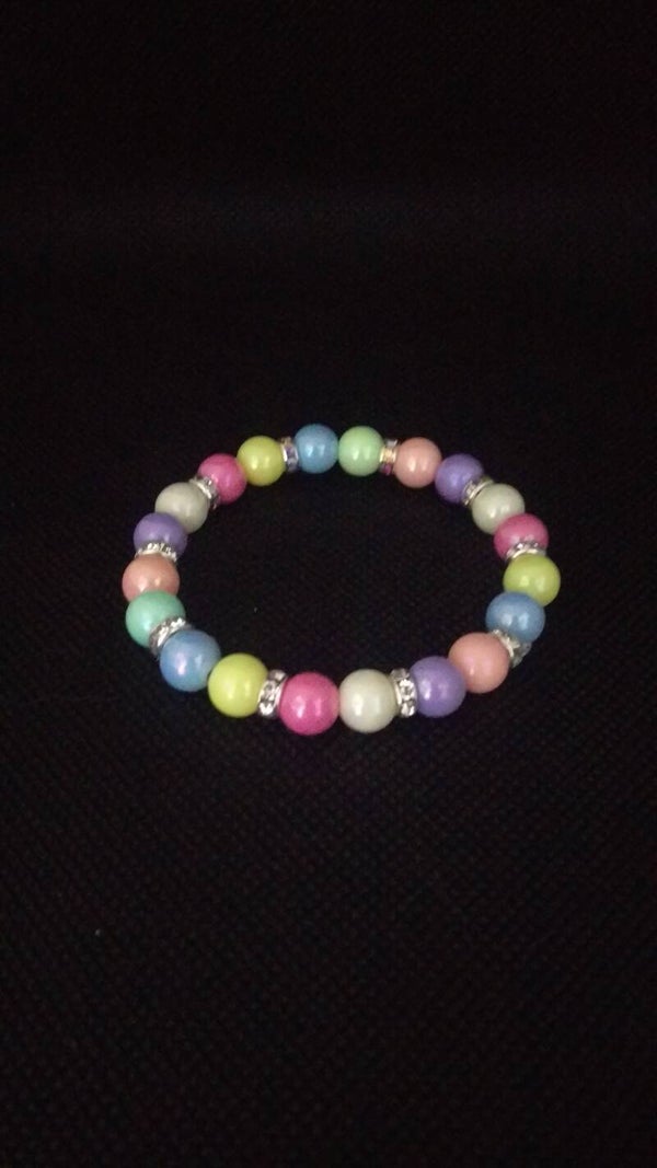 Pretty pastel acrylic beads with sparkly iridescent rainbow rhinestone spacer beads.