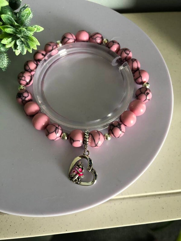 - Pretty pink turquoise 8mm beads, 4mm silver ball spacer beads and completed with this beautiful sterling silver heart featuring a mother and daughter embraced in a hug . Lovely gift from a mother to a daughter or a daughter to a mother